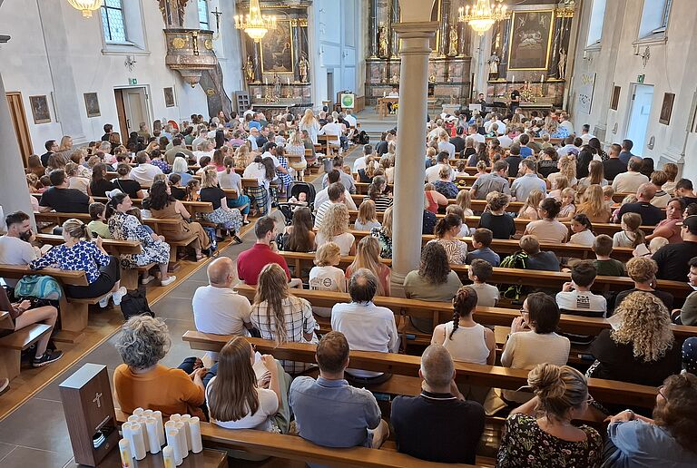 Das neue Schuljahr beginnen ist eine grosse Sache: Dazu waren in der festlichen Pfarrkirche in Walchwil alle Schülerinnen und Schüler samt Eltern und Grosseltern gemeinsam mit den Lehrpersonen eingeladen – und sie waren alle da!