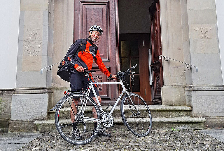 In der Reformierten Kirche Kanton Zug haben moderne Arbeitsansätze längst Priorität: Von 120 Mitarbeitenden sind 108 in Teilzeit tätig. Einer davon ist Johannes Bösel, der nebst Kirchenmusiker auch als Energieingenieur und Velokurier unterwegs ist.