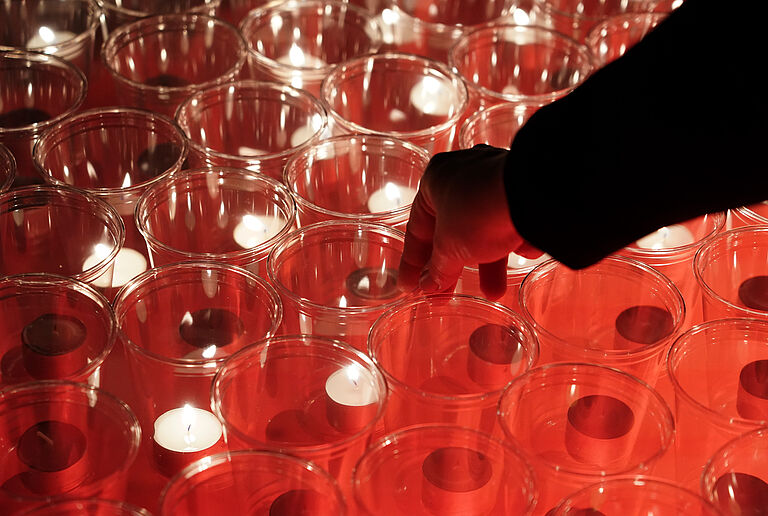 In der dunklen Kirche erwarten uns viele leuchtende Kerzen, die uns das Warten auf das Christkind verkürzen.
